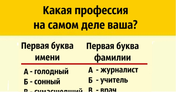 Найдите первые буквы ваших имени и фамилии и узнайте, кем вам суждено стать