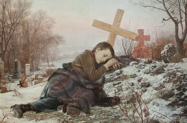 Тот холмик обнял и рыдал,