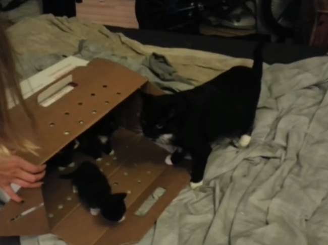 А четверо бездомных котят снова обрели маму.