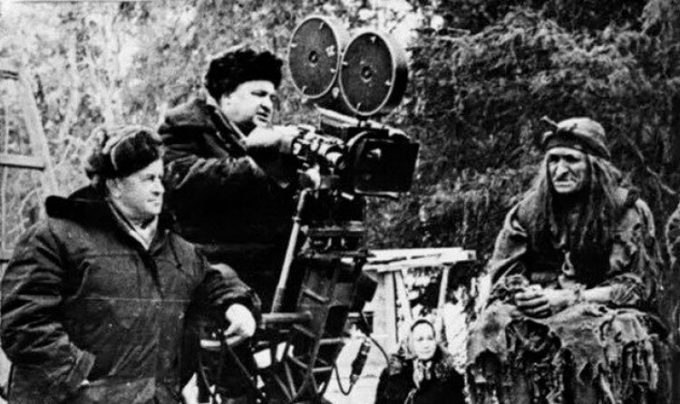 Георгий Милляр и Александр Роу на съемках фильма “Морозко”