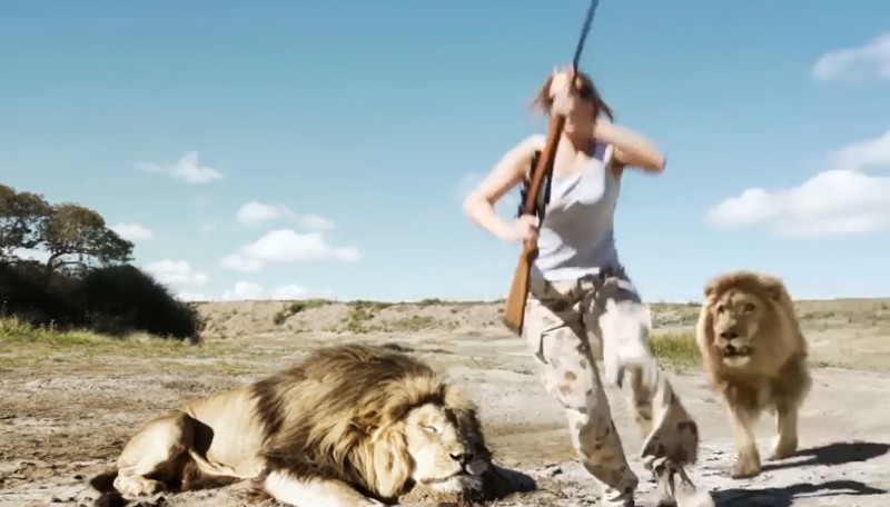 Парочка решила сделать эффектную видеосъемку с телом убитого ими льва. Они увлеклись настройкой своей видеокамеры и потеряли бдительность… В это время внезапно появился еще один агрессивный хищник, который и застал охотников врасплох.