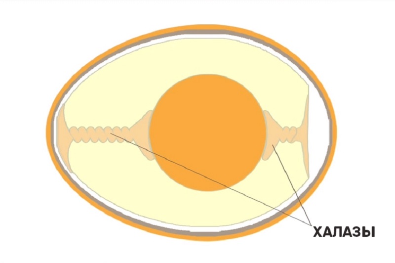 Наличие таких жгутиков у разбитого куриного яйца свидетельствует о свежести продукта, так как со временем халазы имеют свойство растворяться. Если ты обнаружил такой канатик хотя бы с одной стороны желтка, значит, перед тобой недавно снесенное яйцо.