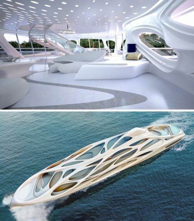Прекрасная яхта «Джаз» похожа на стремительное и изящное морское животное, а спроектировала ее Заха Хадид. Авангардистский вид судна точно заставит свернуть голову всех встречных миллионеров и кинозвезд на классических яхтах.