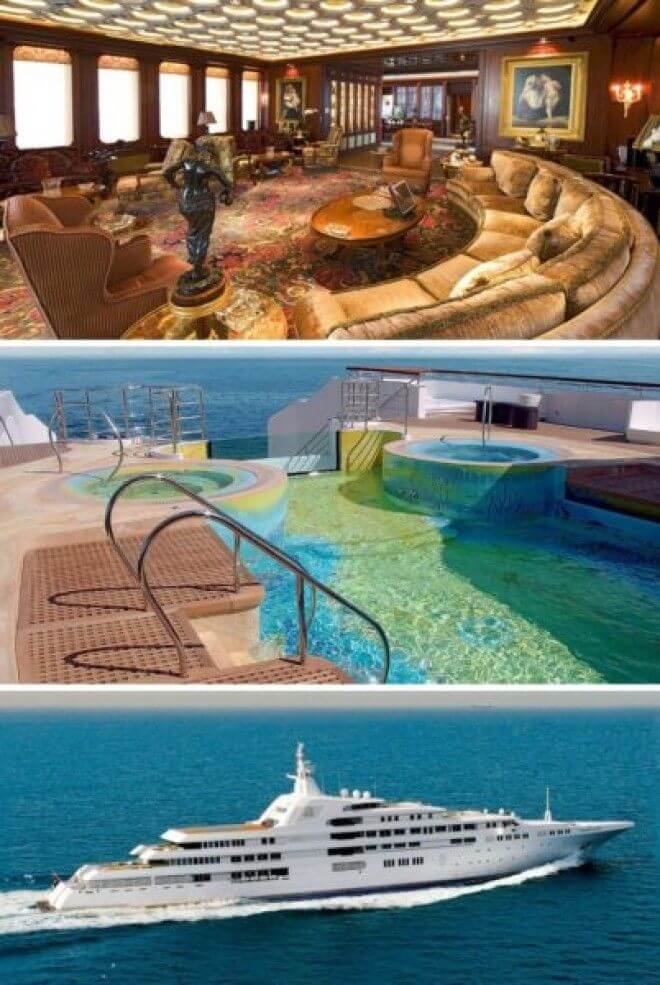«Эклипс» (Eclipse — затмение) — одна из самых шикарных и дорогих яхт в мире. Ее стоимость — $ 1,2 млрд. Принадлежит она Роману Абрамовичу, который отлично знает, как путешествовать со вкусом и в роскоши. На мегаяхте есть концертный зал, кинотеатр, винный погреб, два бассейна, один из которых превращается в танцевальную площадку. Из техники — 2 вертолета, 4 катера, 20 скутеров и — внимание — субмарина на 12 мест.