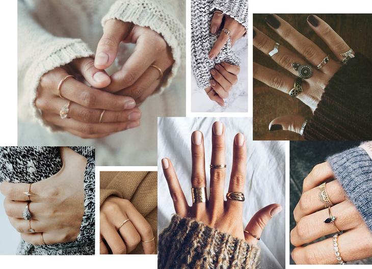 Как подобрать украшение к свитеру, если речь идет о модели оверсайз с объемными удлиненными рукавами? В этом случае стоит акцентировать внимание на кольцах. Уже который сезон позиции не сдают фаланговые кольца, с ними можно составлять на пальцах ювелирные композиции, комбинируя их с другими украшениями разной ширины и формы. Главное – подобрать близкие по оттенку металлы.