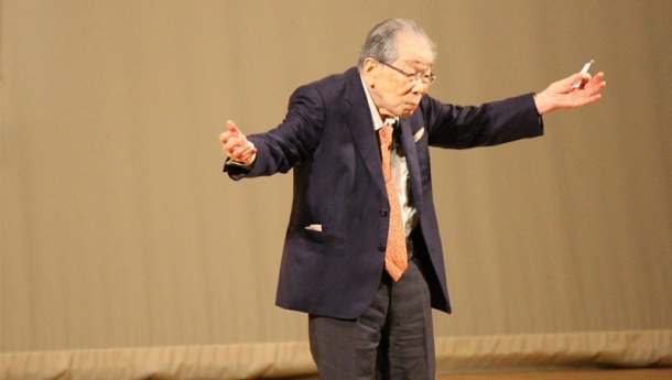 Шигеаки Хинохара проводил минимум 150 лекций в год. Длительность каждой — до полутора часа, и всё это время он читал их стоя.