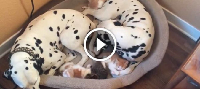 От крошечных котят отказалась мама, но их приняла пара далматинов