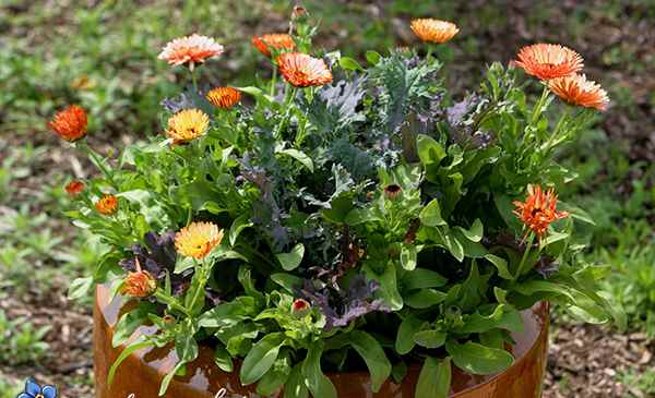 При создании необычного дизайна балкона календулу лучше сажать вместе с другими цветами — анютиными глазками, луковичными (нарциссами, тюльпанами), ампельными петуниями, декоративной капустой, декоративными и пряными травами.