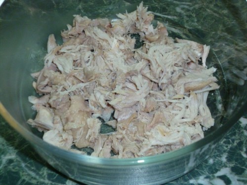 Убираем косточки, что в бедре, что в окорочке их мало и много времени не занимает. Я руками разбираю на волокна.