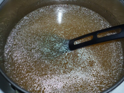 Кипятить не нужно, выключаем плиту, как только желатин разошелся в бульоне.