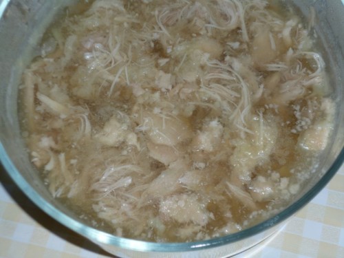 Теперь переливаем бульон в форму с мясом.