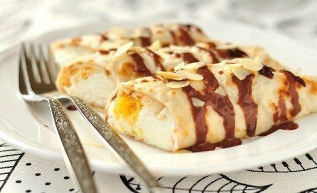 Смешайте сливочный сыр с несколькими каплями лимонного сока и лимонным вареньем. Сверху присыпьте блины сахарной пудрой!