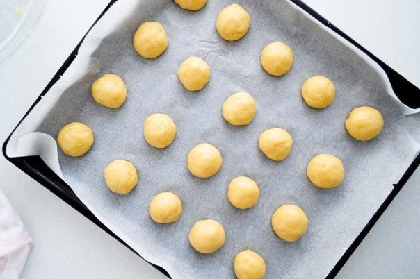 3. В отдельной емкости объединить муку и разрыхлитель, добавить к остальным ингредиентам, замесить тесто. При помощи столовой ложки сформировать из теста полусферы, выложить на противень, выпекать в духовке 10 минут.