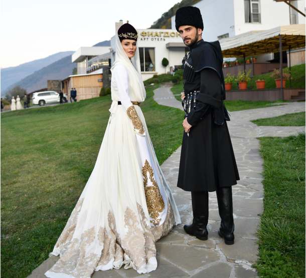Во время бракосочетания, которое проходило в Кабардино-Балкарии, певица и ее жених были облачены в традиционные костюм